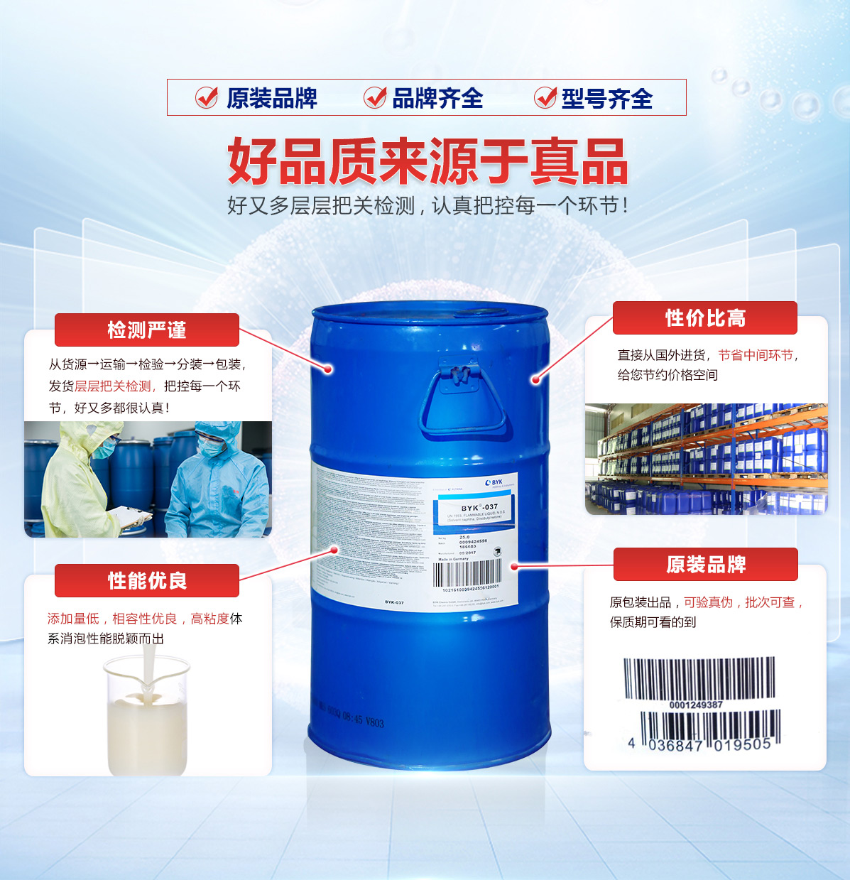 | 水墨消泡劑 | 耐熱性好,化學(xué)性穩(wěn)定,無(wú)腐蝕、不影響產(chǎn)品、不燃、不爆 | 德國(guó) | 20KG桶裝 | 12個(gè)月 |